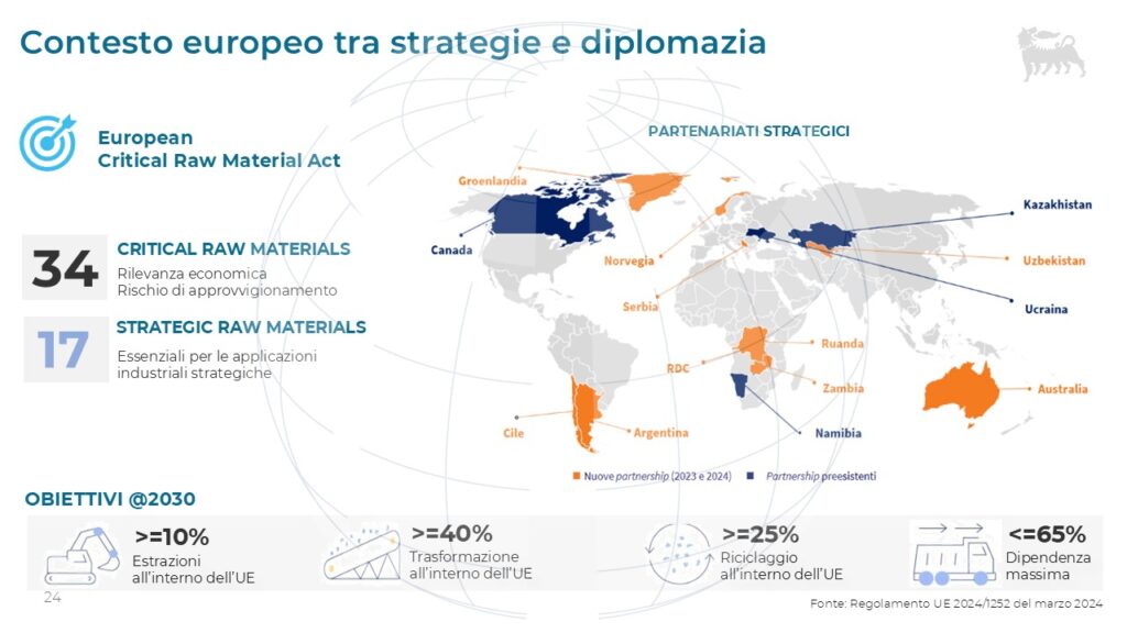 Consapevole di queste criticità, nel 2024 l’Unione Europea ha approvato il Critical Raw Materials Act (CRMA), una normativa destinata a rafforzare la resilienza delle catene di approvvigionamento.